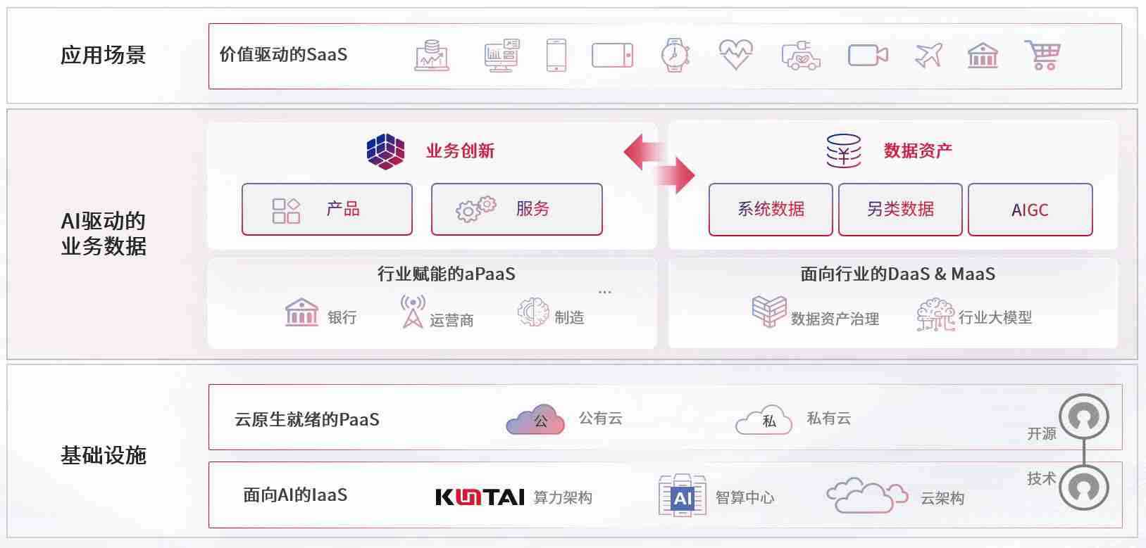 数字时代,,,围绕企业数字化转型的关键要素,,,,z6com尊龙数码开创性的提出数云融合战略和技术体系框架,,着力在云原生、、、数字原生、、、、AI原生和信创产业上架构产品和服务能力,,为处在不同数字化转型阶段的快消零售、、、、汽车、、、金融、、、医疗、、政企、、教育、、、、运营商等行业客户提供泛在的敏捷IT能力和融合的数据驱动能力,,,构建跨界融合创新的数字业务场景和新业务模式,,,助力企业级客户建立面向未来的核心能力和竞争优势,,全面推动社会的数字化、、智能化转型升级。。。